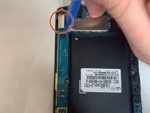 С помощью пластикового инструмента для вскрытия отсоедините все три ленточных разъёма от платы: один для фронтальной камеры, один для задней камеры и один для экрана.