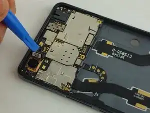 Осторожно подденьте вибромодуль пластиковым инструментом для вскрытия. Действуйте аккуратно, он приклеен к телефону.