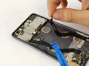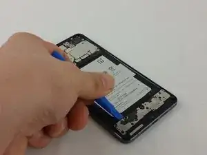 Под аккумулятором находится клей, поэтому может понадобиться использовать чёрную пластиковую лопатку, чтобы попасть между аккумулятором и корпусом и поддеть аккумулятор, но будьте очень осторожны, чтобы не порвать шлейфы под аккумулятором.