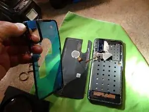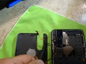 Отсоедините шлейф датчика отпечатка пальца, чтобы установить новый уплотнитель крышки. Поверхность должна быть чистой, чтобы крышка легла плотно без зазоров.