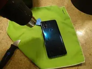 Используйте термофен или фен для волос, чтобы размягчить клей на задней панели.