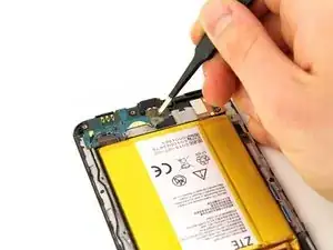 Пинцетом отогните жёлтую каптон-ленту, расположенную с правой стороны телефона.