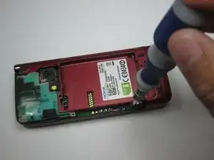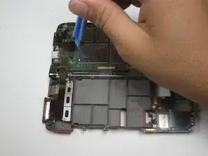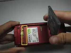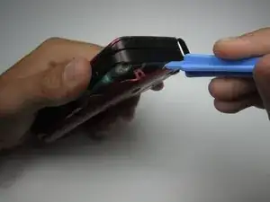 Используя пластиковый инструмент для вскрытия, отделите заднюю крышку от телефона.