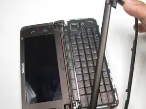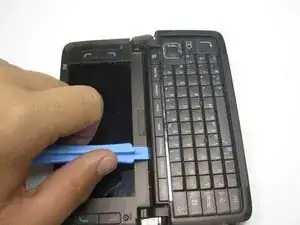Откройте телефон и используйте пластиковый инструмент для вскрытия, чтобы снять крышку клавиатуры.
