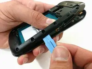 Используя указательный палец, потяните верхнюю часть батареи. Затем потяните батарею к себе.