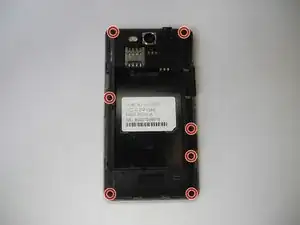 Удалите 7 винтов ph000, расположенных на задней стороне телефона.