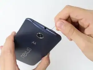 С помощью инструмента для извлечения SIM-карты (подойдет также скрепка) нажмите на отверстие в верхней части телефона, пока держатель SIM-карты не освободится. Это не должно требовать значительного усилия.
