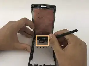 Вставьте пластиковый инструмент для открытия в зазор под экраном и пройдите по периметру.