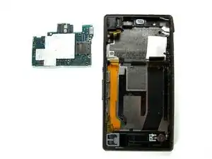 Материнская плата сильно приклеена к корпусу телефона, поэтому для её извлечения потребуется некоторое усилие.