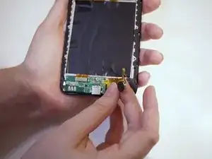 С помощью новой клейкой полоски соедините заменяемую плату с рамой. Убедитесь, что вибромотор закреплен на том же месте, что и оригинал.