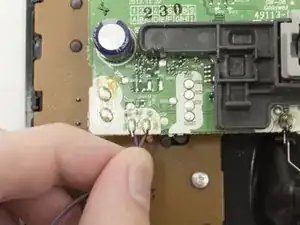 Теперь, когда устройство открыто, разъем питания можно легко извлечь из его посадочного места.