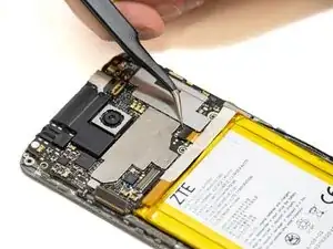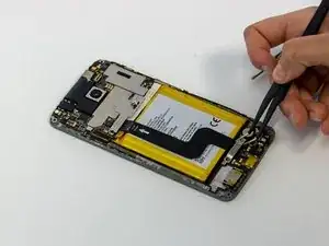 Вставьте тонкий, безопасный для ЭЗУ инструмент или пинцет под провод до тех пор, пока он не прижмется к разъему, и поднимите его прямо вверх от платы, чтобы отключить коаксиальный антенный кабель.