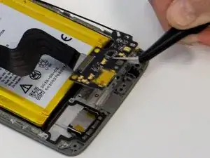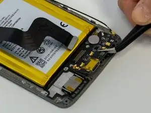 Эта деталь сильно соединена с корпусом, поэтому обводите лопатку вокруг периметра платы USB-C, чтобы облегчить её удаление, прежде чем пытаться вынуть её полностью.