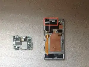 Отключите шлейф LCD-дисплея. Разъём находится с другой стороны платы, под разъёмом шлейфа кнопок питания/громкости.