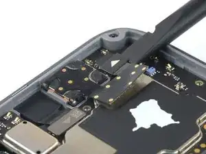 Используйте лопатку, чтобы отсоединить разговорный динамик — подденьте разъём прямо вверх из его гнезда.