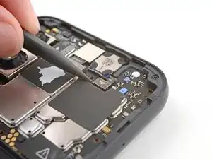 Вставьте ноготь или инструмент для поддевания, например лопатку, под выступ в правом нижнем углу задней крышки.