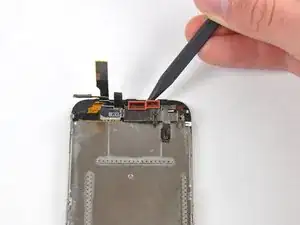 Вставьте заострённый конец медиатора в зазор под верхним правым углом разговорного динамика и аккуратно подденьте вверх.
