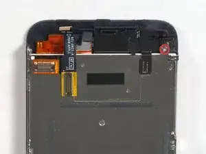 Сборка дисплея всё ещё подключена к iPhone несколькими кабелями, поэтому пока не пытайтесь полностью её снять.
