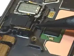 *Необязательно* Снимите медную ленту в верхнем правом углу телефона пинцетом.