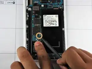 Вставьте лопатку в гнездо стилуса и отожмите среднюю рамку от корпуса телефона.