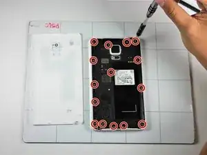 Отверткой Phillips #000 отвинтите пятнадцать винтов длиной 4 мм, фиксирующих заднюю раму.