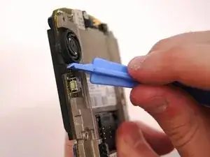 Используйте пластиковый инструмент для вскрытия, чтобы поддеть край экрана вблизи трек-колеса.