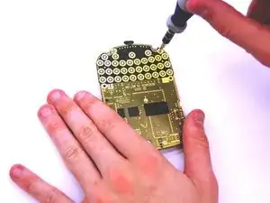 Отверткой Torx T6 выкрутите три винта длиной 1/8 дюйма, показанные на изображении.