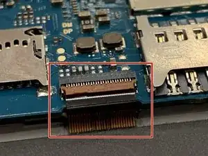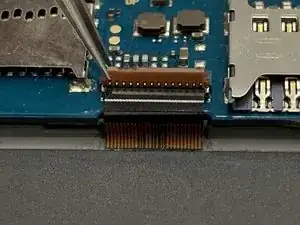 Снимите белый ZIF-разъём, затем аккуратно потяните шлейф, соединяющий дигитайзер с материнской платой.