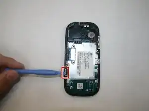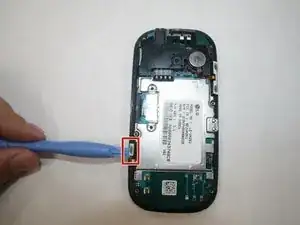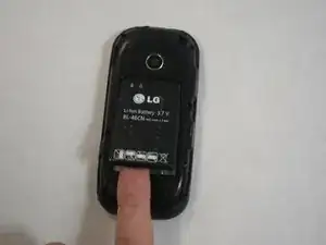 Просто используйте предусмотрённую язычок, чтобы поднять аккумулятор из гнезда и отложить его в сторону.