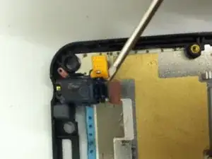 Аккуратно вставьте маленькую плоскую отвёртку между узлом динамика и задней частью корпуса