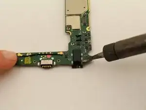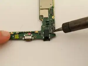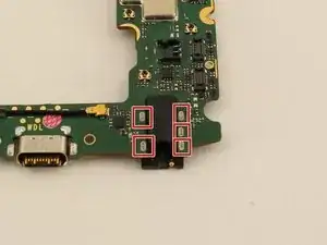 С помощью паяльника пропаяйте пять контактных точек и снимите порт зарядки с устройства.