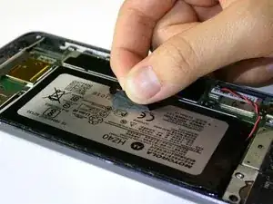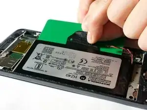 Поднимите карту, чтобы помочь отделить батарею от клея.