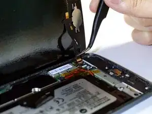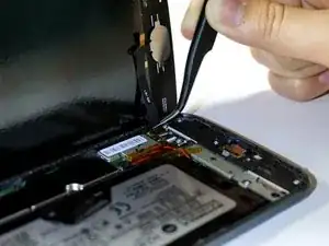 Поднимите маленькую фиксирующую защёлку на ZIF‑разъёме и с помощью пинцета вытащите кабель, выдвигая его прямо из гнезда.