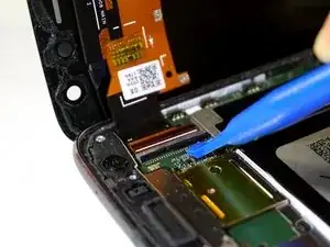 Фиксирующая планка — это маленькая чёрная планка на ZIF‑разъёме дигитайзера.