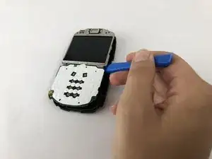Отделите чёрный пластиковый внутренний корпус от экрана, поддевая его синей пластиковой открывалкой.