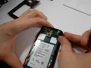 Как только зажимы будут отсоединены, задняя крышка должна отделиться и открыть доступ к внутренним компонентам телефона. Месторасположение разъёма для наушников указано на изображении.