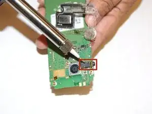 Если он всё ещё прикреплён, нагрейте место пайки с помощью термопинцета паяльной станции поверх разъёма до тех пор, пока он не ослабнет.