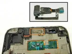 После того как разъём для наушников и слуховой динамик оба будут отключены от корпуса телефона, их можно извлечь и отложить в сторону.
