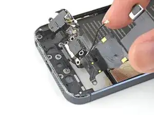 Снимите металлическую скобу разъёма батареи с iPhone.