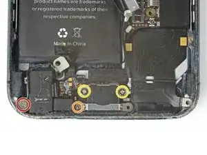 Выкрутите следующие винты, крепящие сборку разъёма Lightning к задней крышке: