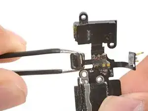 Используйте пинцет, чтобы аккуратно потянуть и снять резиновый кожух микрофона с микрофона. Переставьте кожух на запасную деталь.