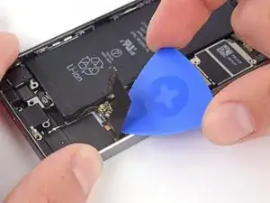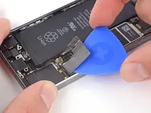 Используйте плоский конец лопатки, чтобы аккуратно поддеть разъём аккумулятора и приподнять его из гнезда на логической плате.