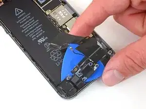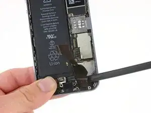 Используйте наконечник лопатки, чтобы поддеть разъём кабеля кнопки Home и поднять его из гнезда.