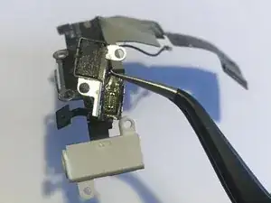 Компоненты, которые обычно нужно перенести, включают прижим, проложенный вдоль левого и верхнего краёв разъёма для наушников, резиновое покрытие микрофона и кронштейн для разъёма кабеля Touch ID. Перейдите к следующим шагам, чтобы перенести резиновое покрытие микрофона и/или разъём кабеля Touch ID.