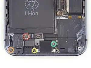 Особенно важно отслеживать винты на этом шаге для повторной сборки. Случайное использование винта 1,3 мм или одного из винтов 1,7 мм в нижнем правом отверстии приведёт к серьёзному повреждению логической платы, из‑за чего телефон не будет загружаться правильно.
