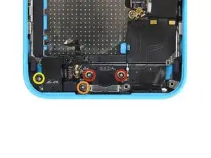 Удалите следующие винты, крепящие разъём Lightning к задней крышке: