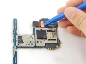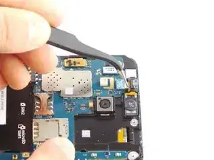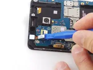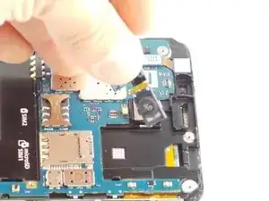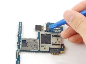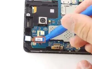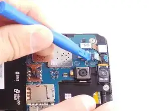 Извлеките материнскую плату и отсоедините защёлку ленточного кабеля задней камеры.