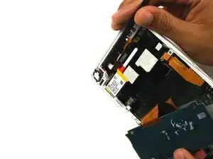 Отсоедините разъём наушников, поддев его лопаткой вверх.