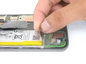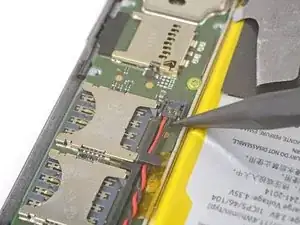 Отклейте и снимите чёрную ленту, соединяющую батарею и телефон.