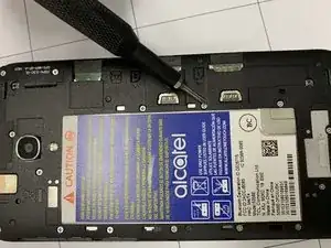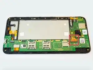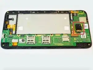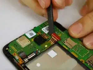 После извлечения винтов снимите среднюю рамку, защищающую электронику телефона, поддев её ногтем или инструментом и аккуратно отщёлкнув.